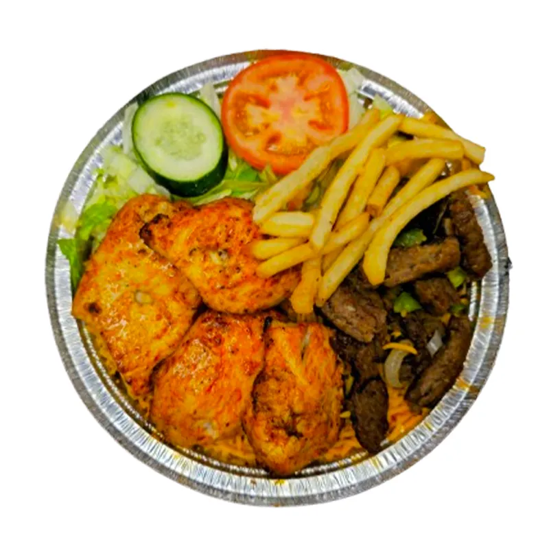 $16.99Grilled fish platter with salad, rice, and white sauce. Juicy fish, flavorful grilled, and paired with a tangy sauce. A wholesome, succulent meal.